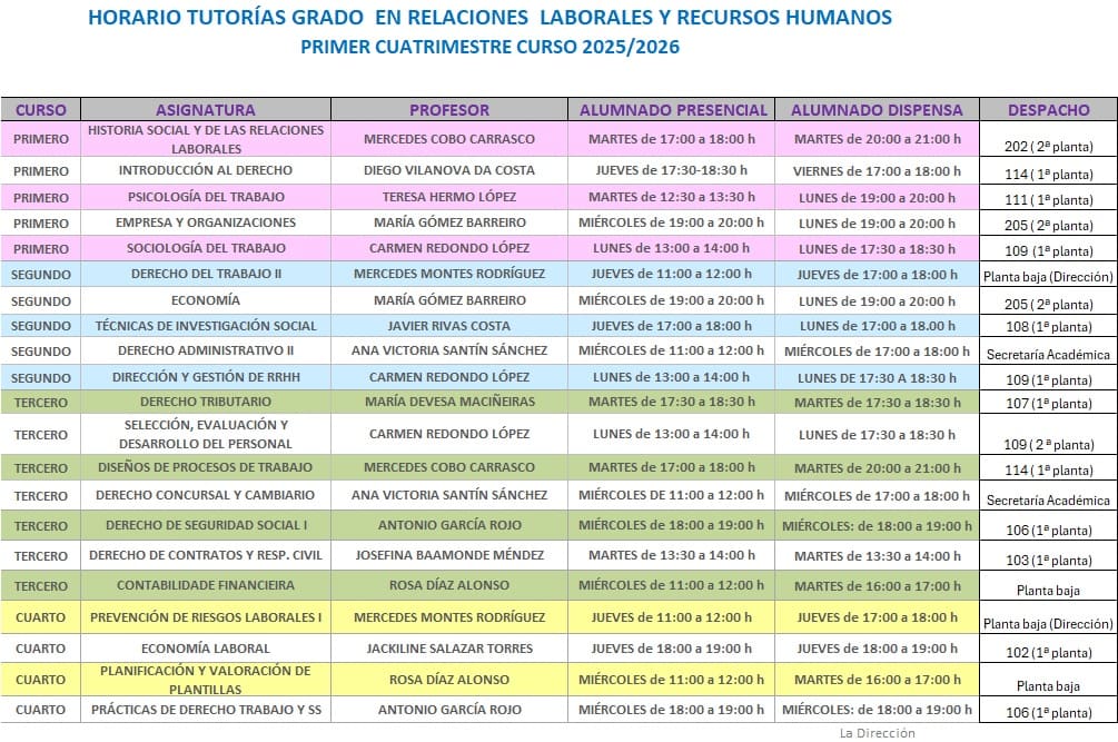 Las tutorías se solicitarán al profesor/a responsable de la materia, a través del correo electrónico correspondiente, con una antelación mínima de 24 horas. Consulta el correo de tu profesor / profesora a continuación.