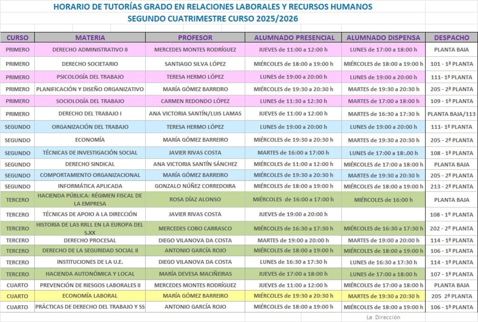 Las tutorías se solicitarán al profesor/a responsable de la materia, a través del correo electrónico correspondiente, con una antelación mínima de 24 horas. Consulta el correo de tu profesor / profesora a continuación.